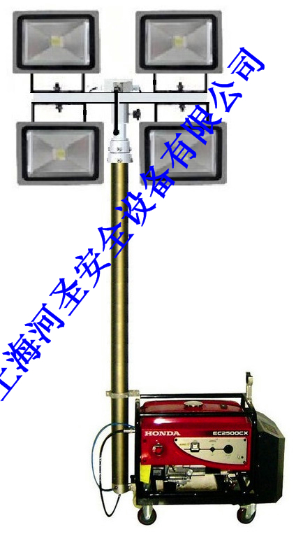 移動照明車由照明燈盤、伸縮氣桿、發電機組、控制系統、底座五部分組成,輕便并易于組合、拆卸,操作簡單,實用方便;