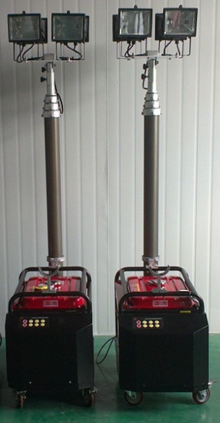 移動照明燈組是一體化的可移動照明系統:由發電機、發電機底盤、氣動升降燈桿、4個500W碘鎢燈、控制箱等幾大部分組成。